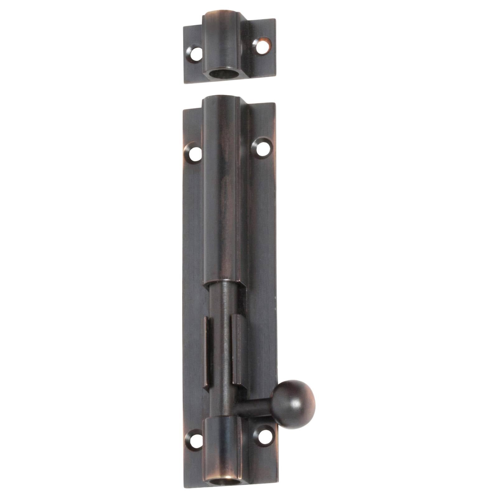 This barrel bolt measures 100mm long, 25mm wide, bolt diameter 7.5mm and bolt throw 17mm. Right angle and flat keepers sold separately. Solid brass construction.