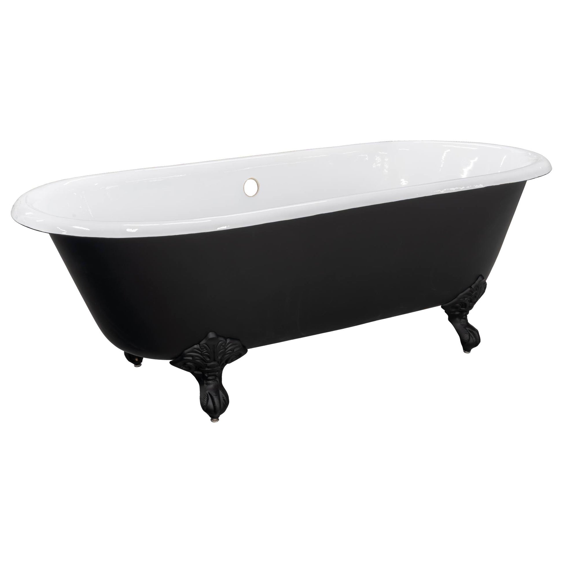 170cm Double Ended Cast Iron Bath with Feet, Matte Black & White