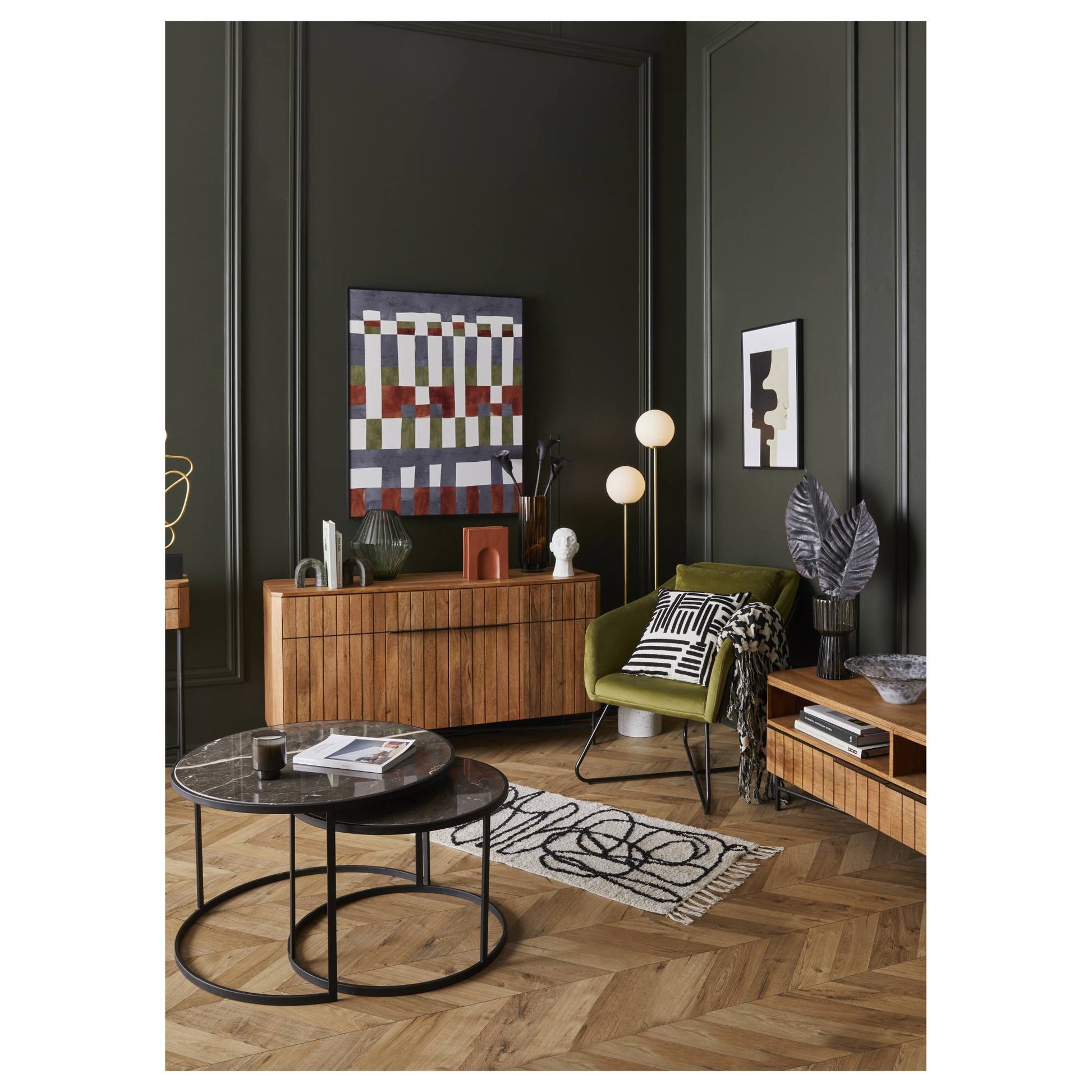 Made from stone, they have an abstract silhouette and dark colour palette.