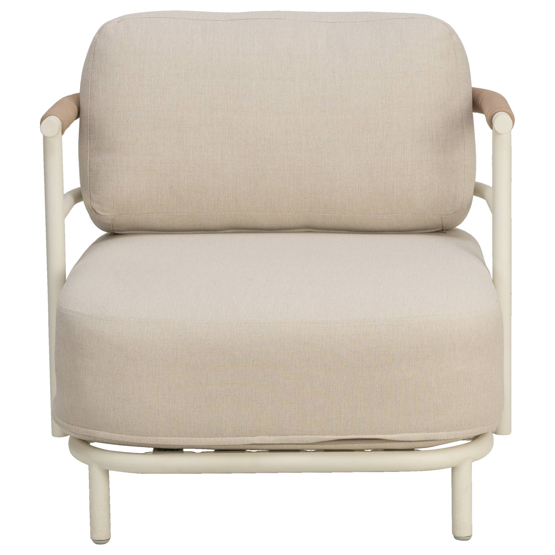 The Audrey Armchair balances structure and softness for refined outdoor comfort. Built on a galvanised steel frame, it features water-resistant olefin cushions with foam and fibre fill for lasting support. Upholstered in a neutral Sandstone tone, it’s designed to suit both coastal and contemporary settings.