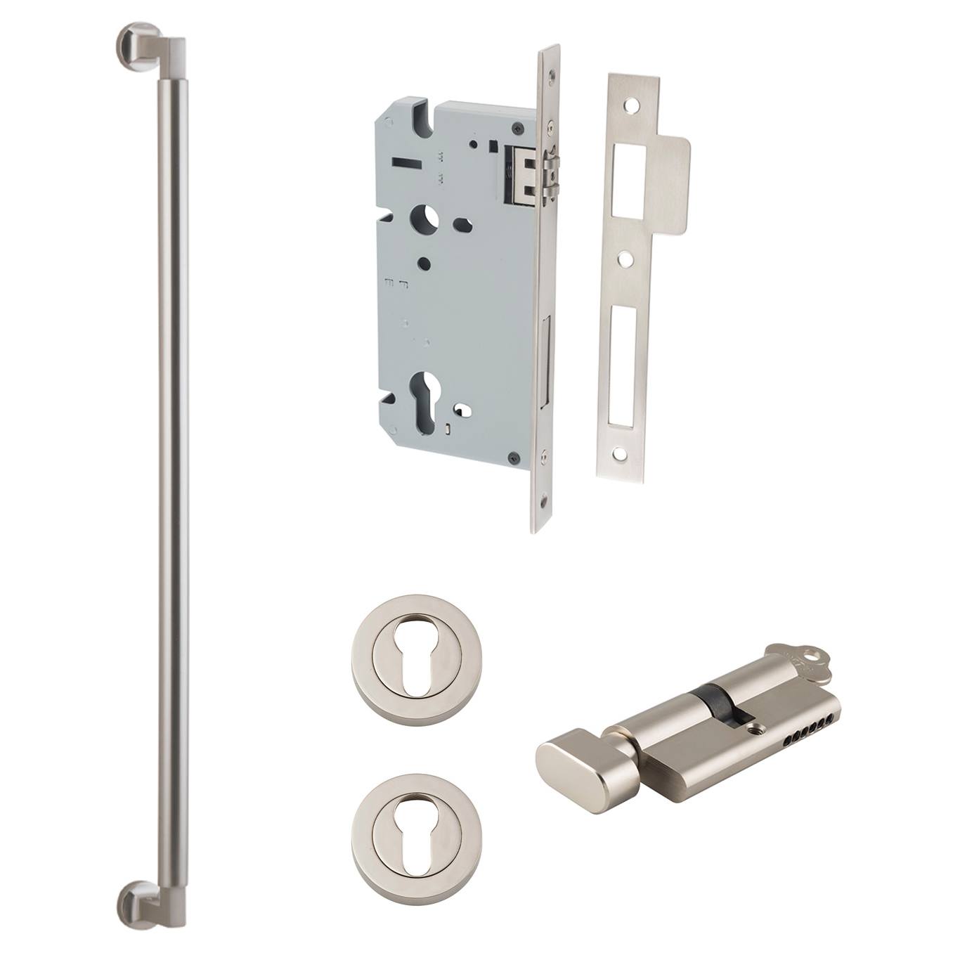 Berlin Pull Handle 600mm Entrance Kit w Separate High Security Lock Satin Nickel