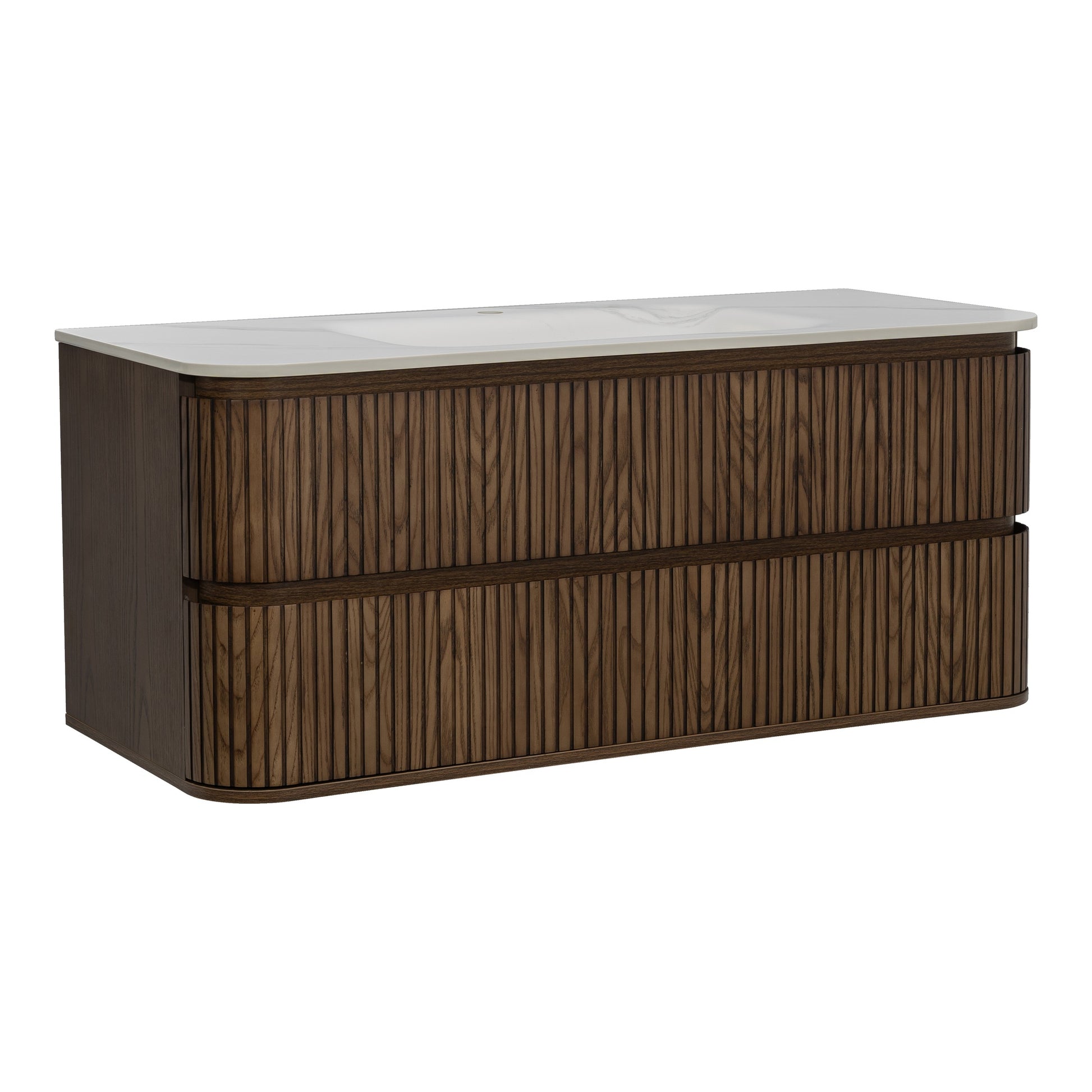 Calso 120cm Single Wall Hung Vanity, Dark Walnut