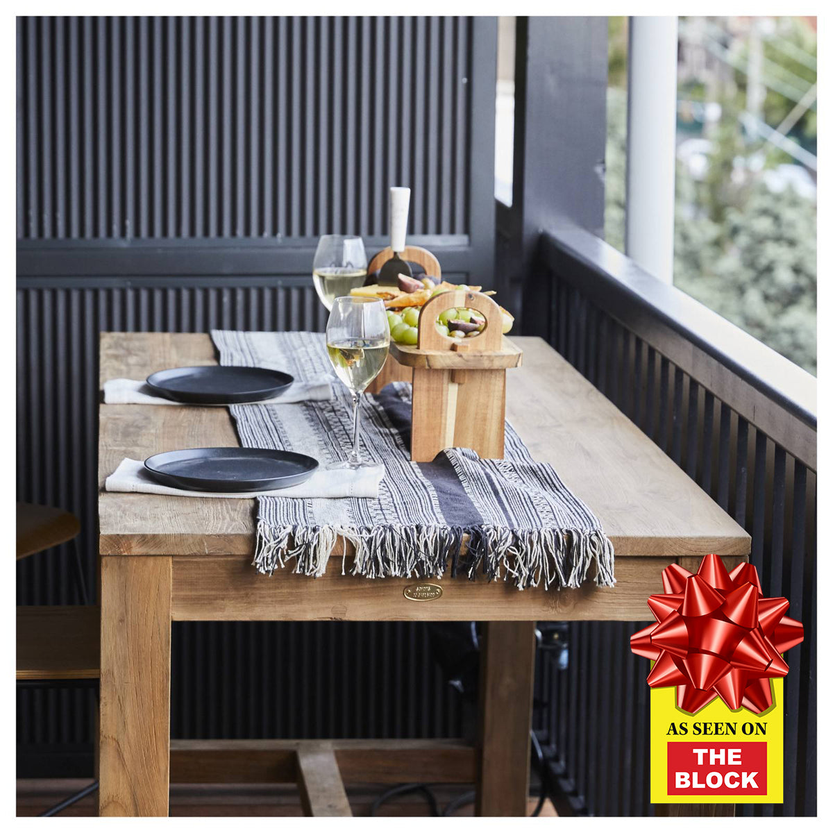This is a versatile teak bar table with slatted table top, made from reclaimed teak with a unique style to complement your home dŽcor. This table set is finished in a natural, rustic and classic lines to overall set the mood of your alfresco dining area.