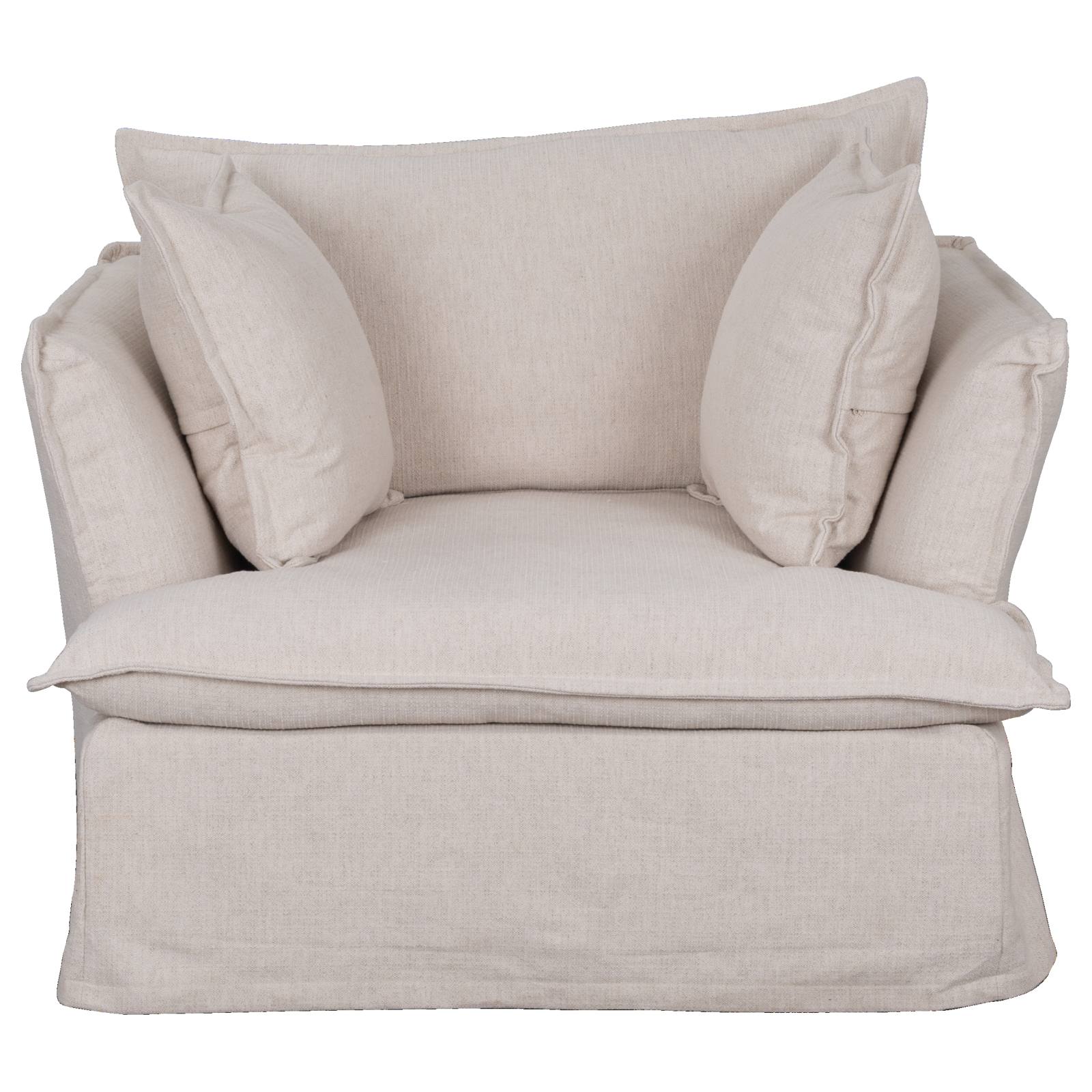 Add a touch of luxury to any room with this stylish armchair, upholstered in premium polyester linen for durability and easy care. Foam and feather-filled seats and pillows offer deep, plush comfort, while the low-profile design encourages relaxation. The removable cover makes cleaning effortless, and the solid timber frame ensures lasting durability. Pair with an Ottoman or other pieces in the collection for a coordinated, elegant look.