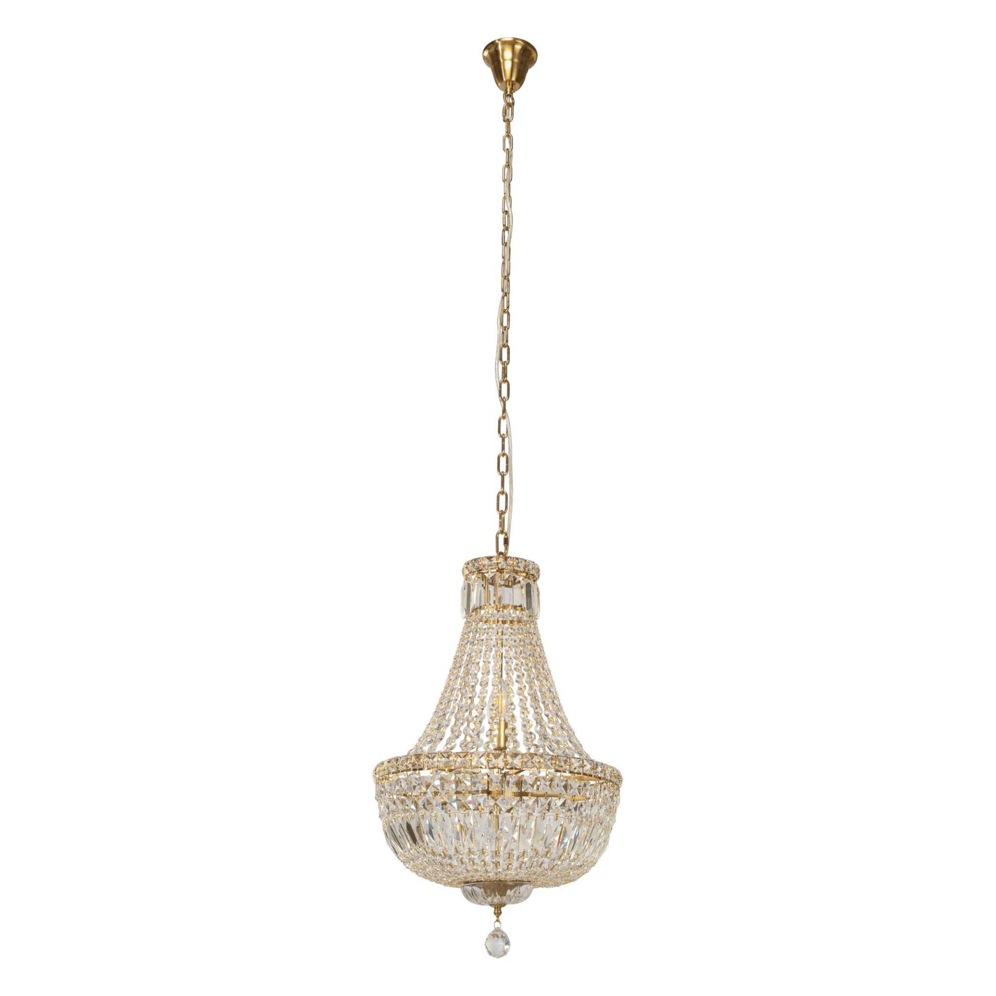 Classique Small 40cm 5 Light Basket Crystal Glass Chandelier, Satin Brass