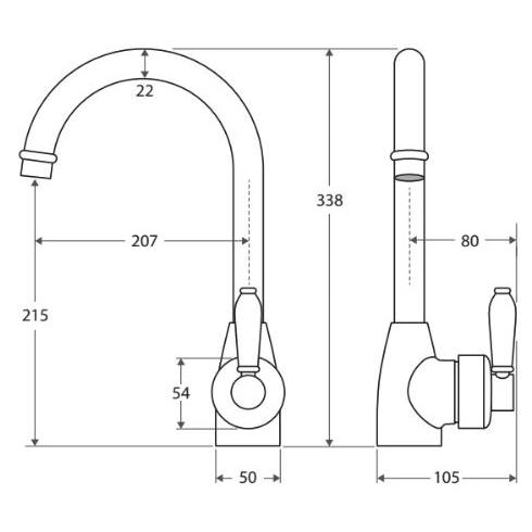 Stunning modern vintage style Designed for kitchen & above counter basins Swivel function Electroplated matte black finish White ceramic handle Made from solid brass Quality European cartridge, 40mm Suitable for mains pressure, max. 500kpa PEX split-resistant flexible hoses