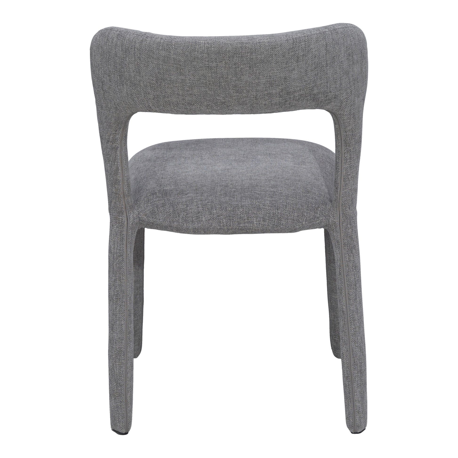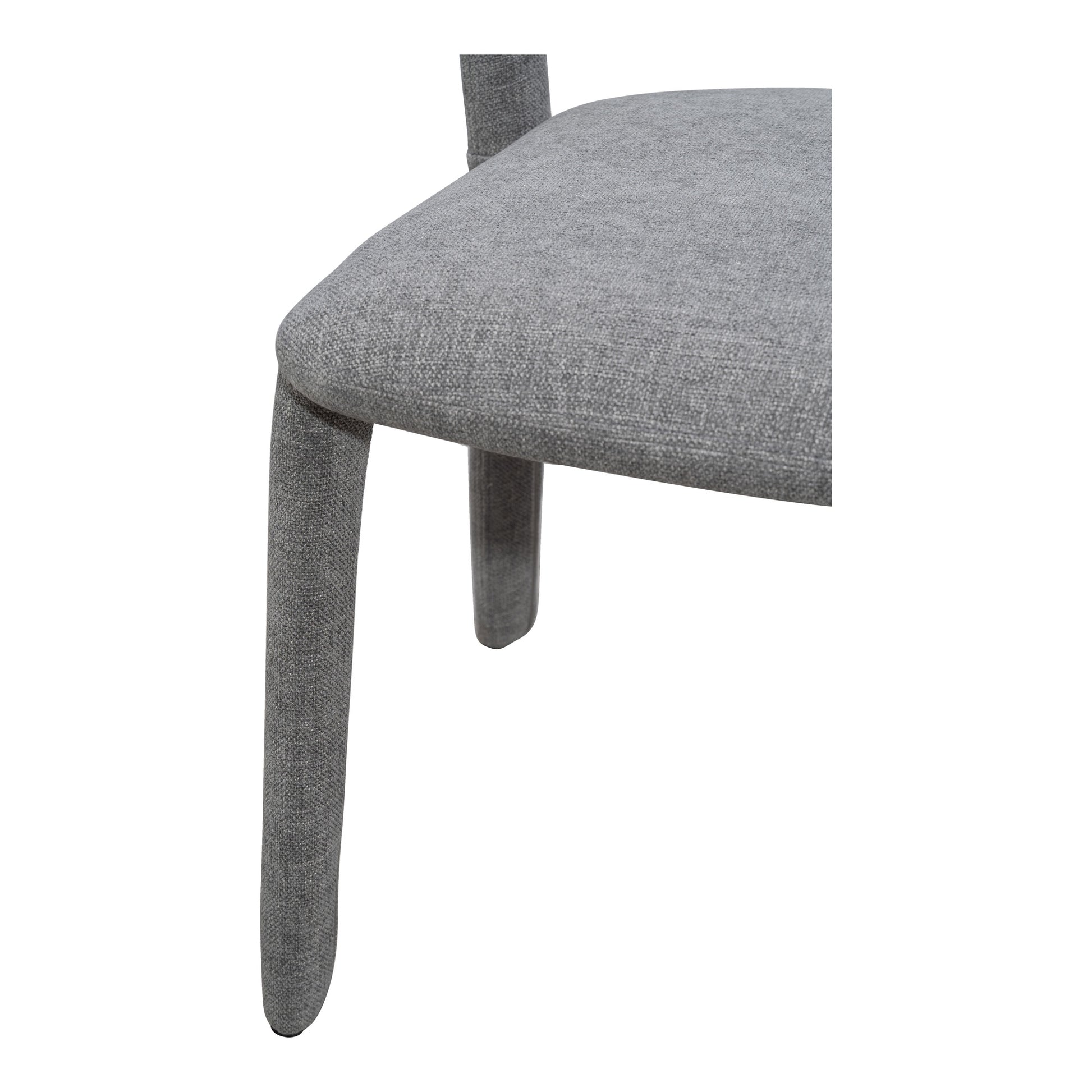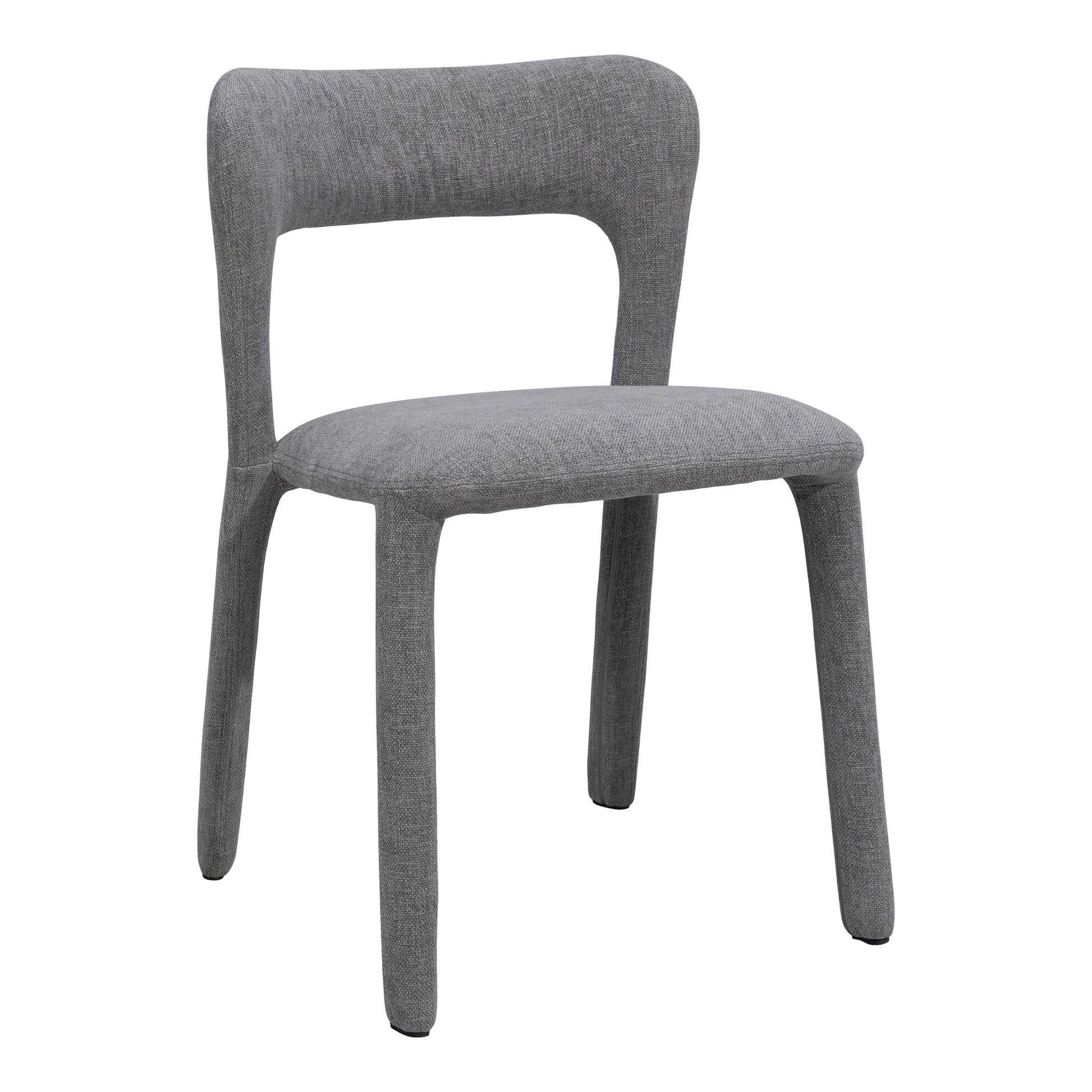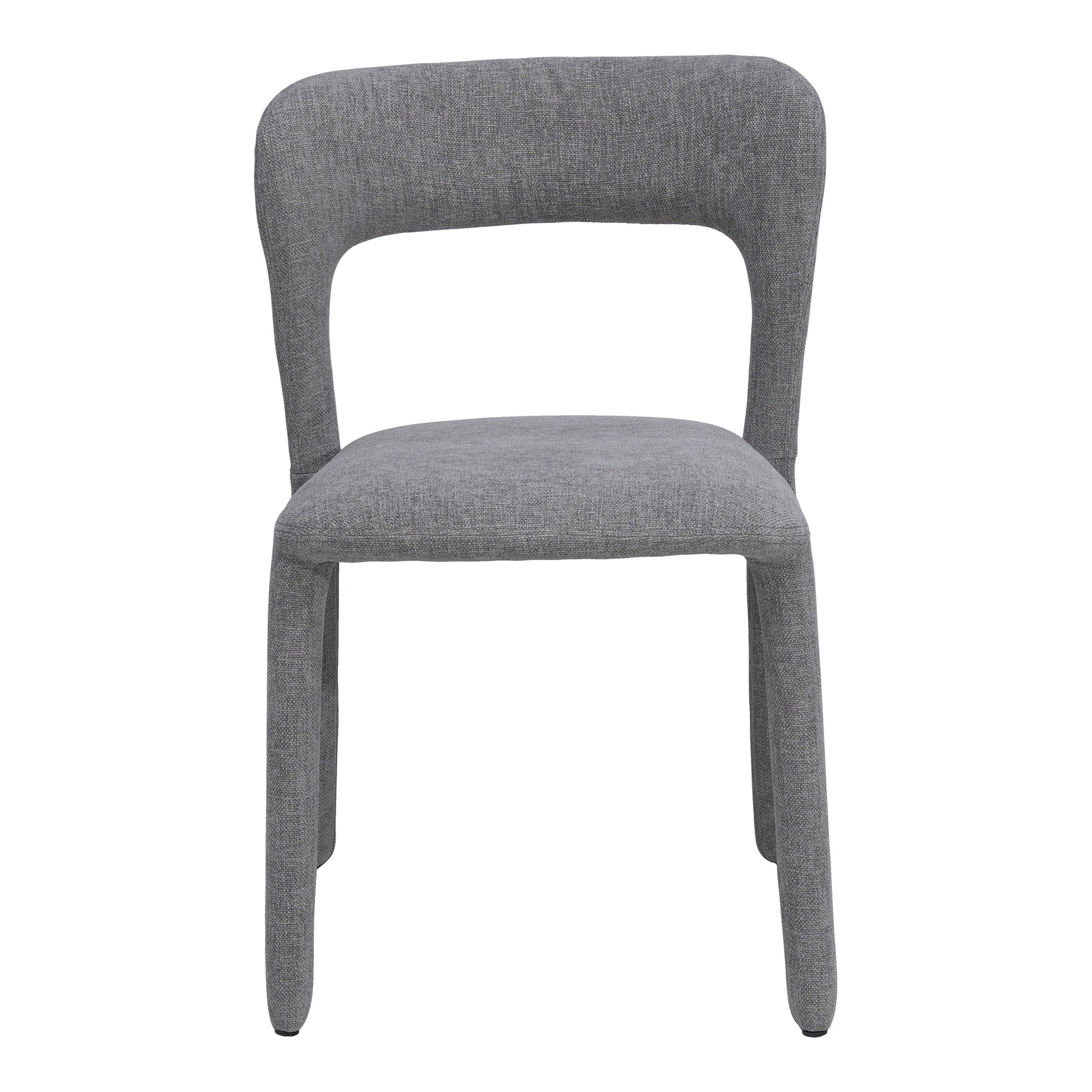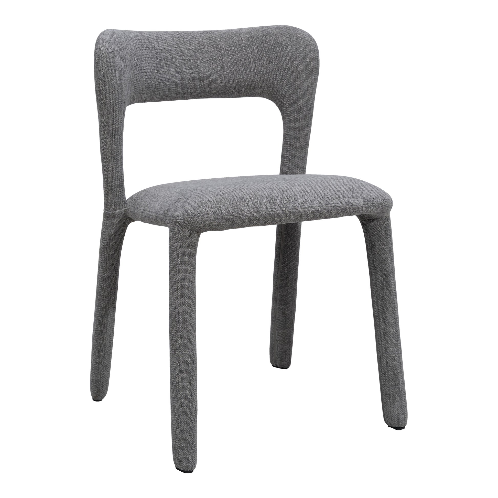 The Elray Dining Chair combines soft, fully upholstered curves with a gently contoured backrest for a natural level of comfort. Its clean, sculptural silhouette and smooth fabric bring warmth and refinement to any dining space. Built on a sturdy metal frame with matching legs, it combines stability with minimalist style. Arrives fully assembled for effortless elegance.