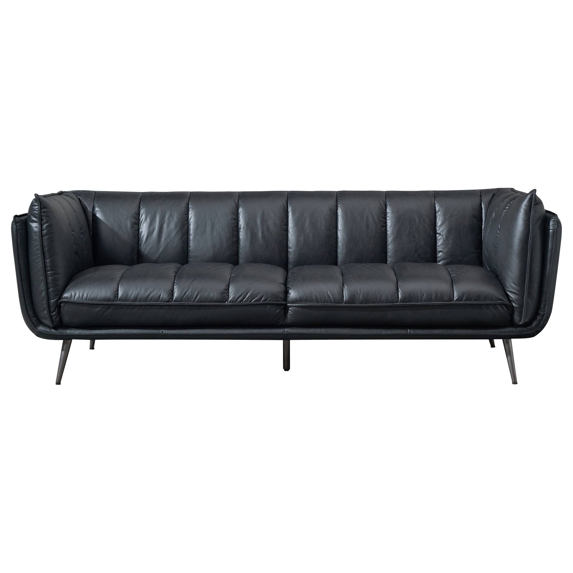 Elevate your home's style and comfort with the Emer 3 Seater Leather Sofa. Upholstered in genuine top-grain cowhide leather, it develops a natural patina over time, adding character and warmth. The plush, tufted backrest and deep channel stitching provide luxurious comfort, while the steel legs offer a sleek, sturdy foundation. Designed to last, this sofa ensures both style and long-term durability.
