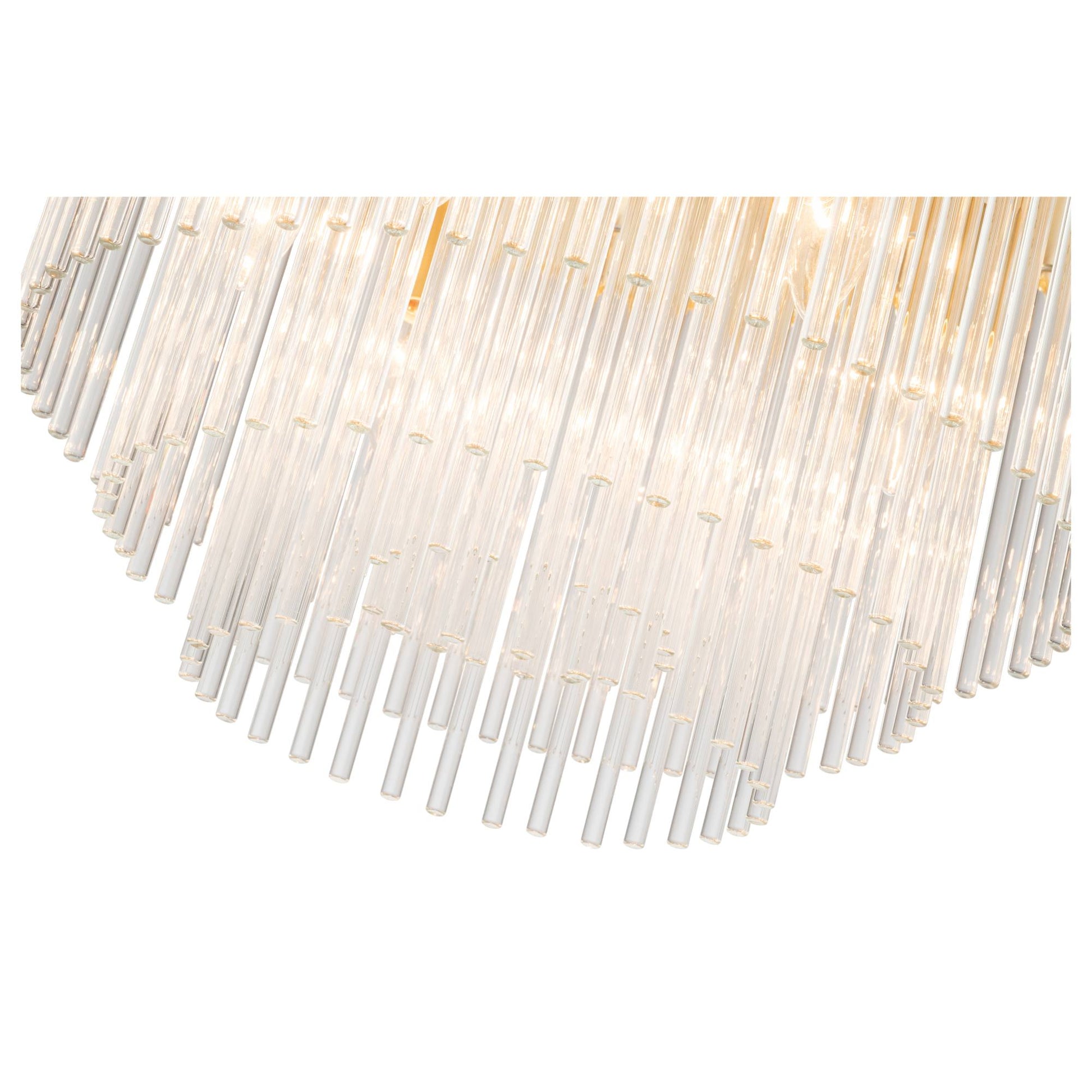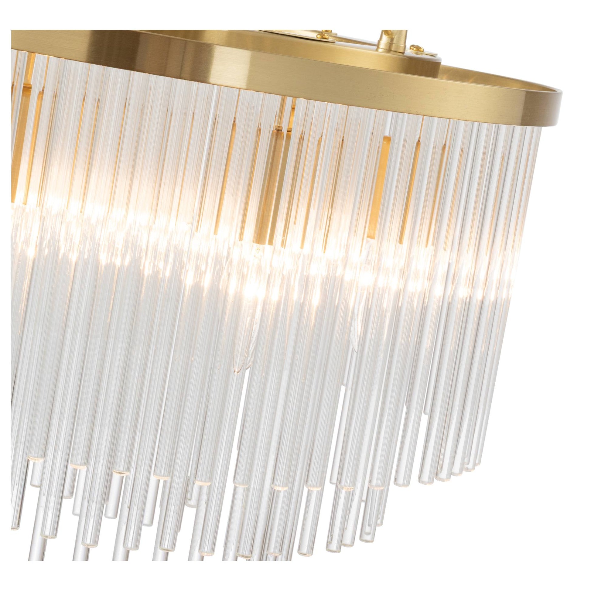 Available in three sizes and finished in a luxurious satin brass, each piece features cascading strands of clear glass rods that beautifully catch and reflect the light.