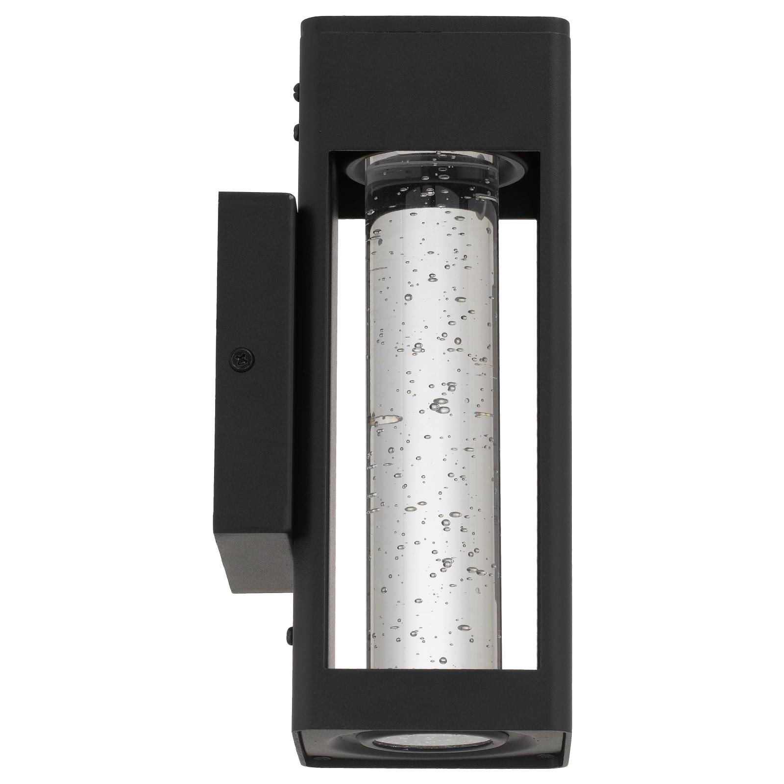 The Hollis Exterior Wall Light features durable aluminium construction with a stylish glass bubble/seed design. Integrated with LED technology, it emits a warm 3000K colour temperature. Available in both black and white colorways, it combines modern aesthetics with practical outdoor lighting solutions.