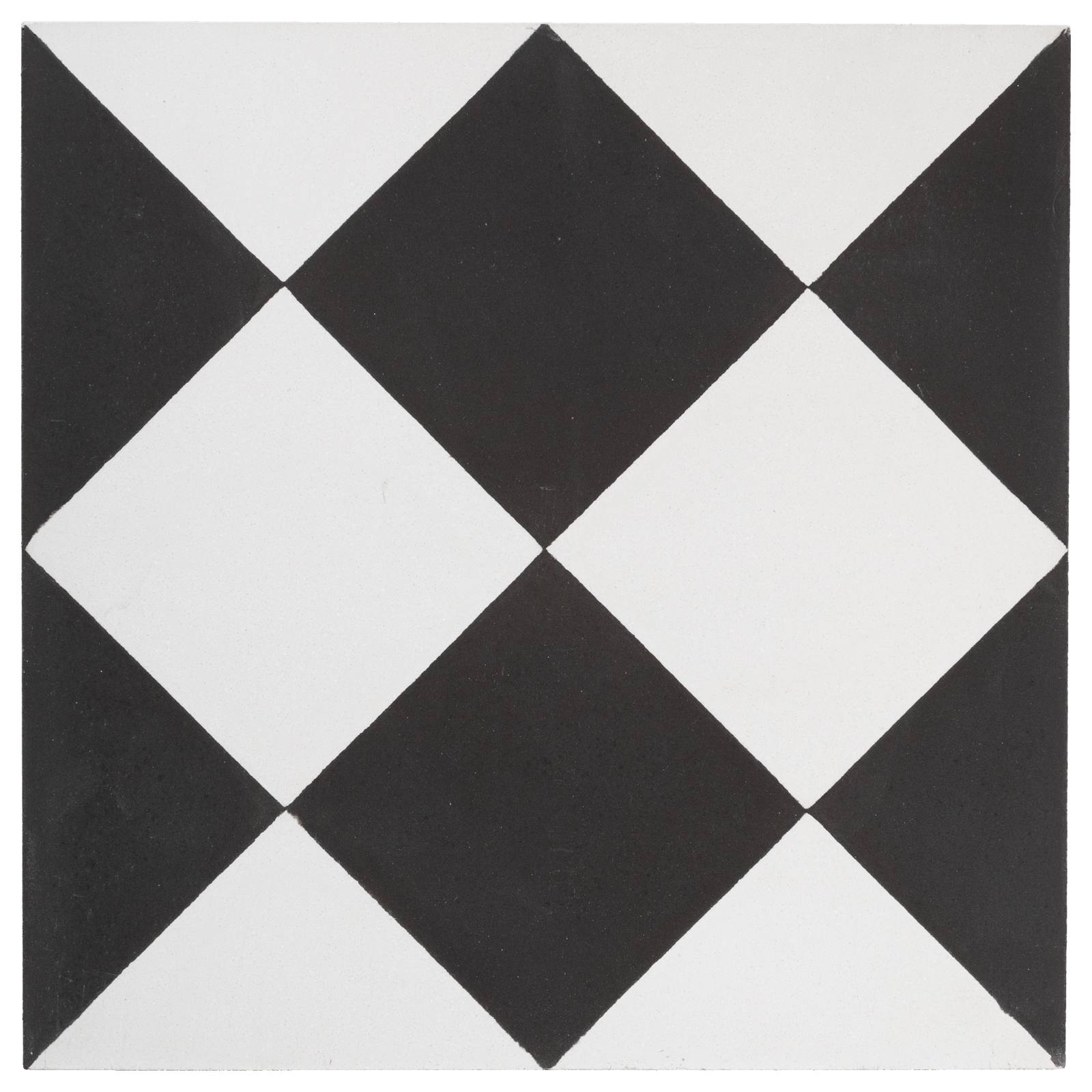 Lindon 20x20 Cement Encaustic Feature Tile, White & Black