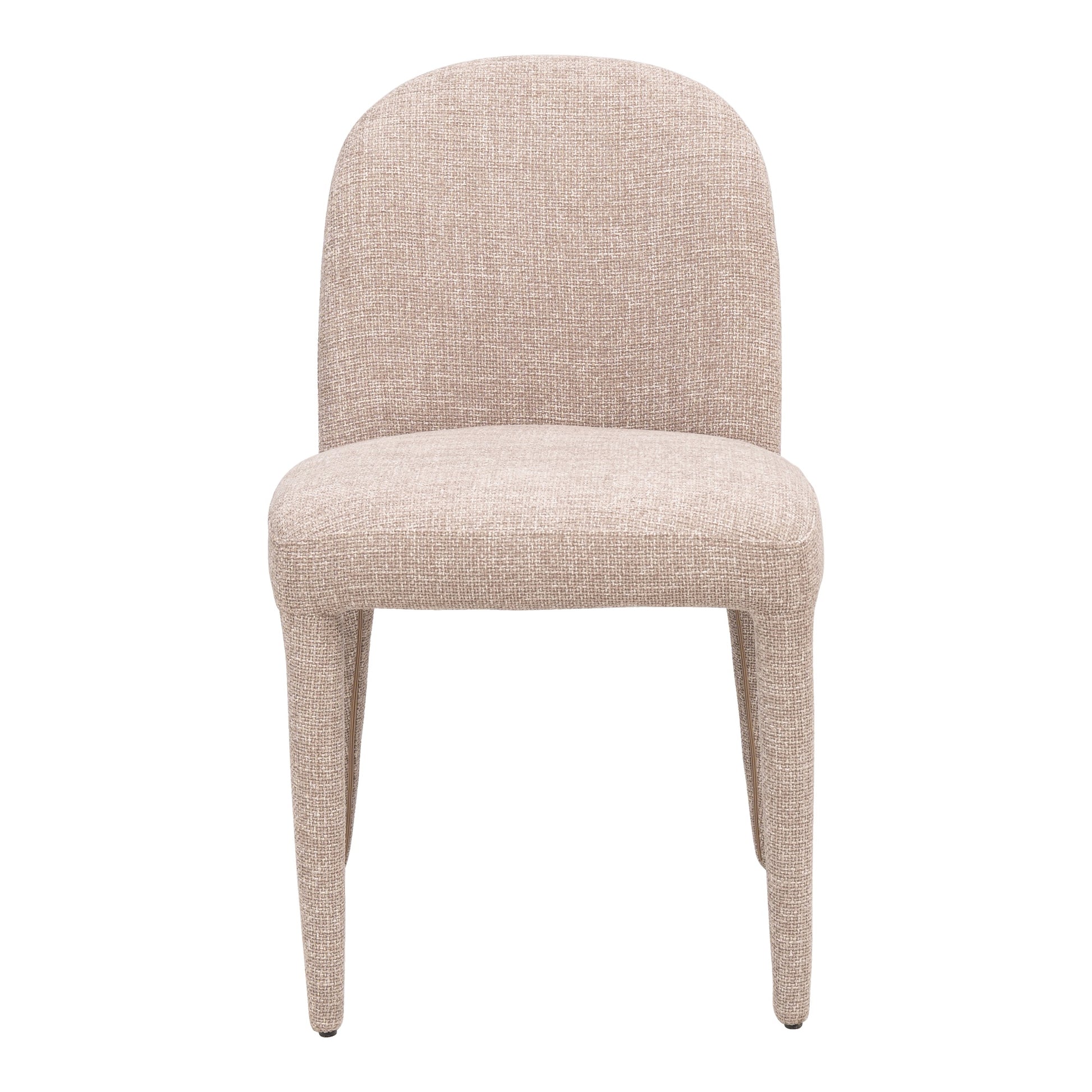 The Lynden Dining Chair combines soft, fully upholstered curves with a full-arc backrest for a natural sense of comfort. Its clean, sculptural silhouette and smooth fabric bring warmth and style to any dining space. Built on a sturdy metal frame with matching legs, it delivers stability without compromising its refined look. Arrives fully assembled for effortless use.