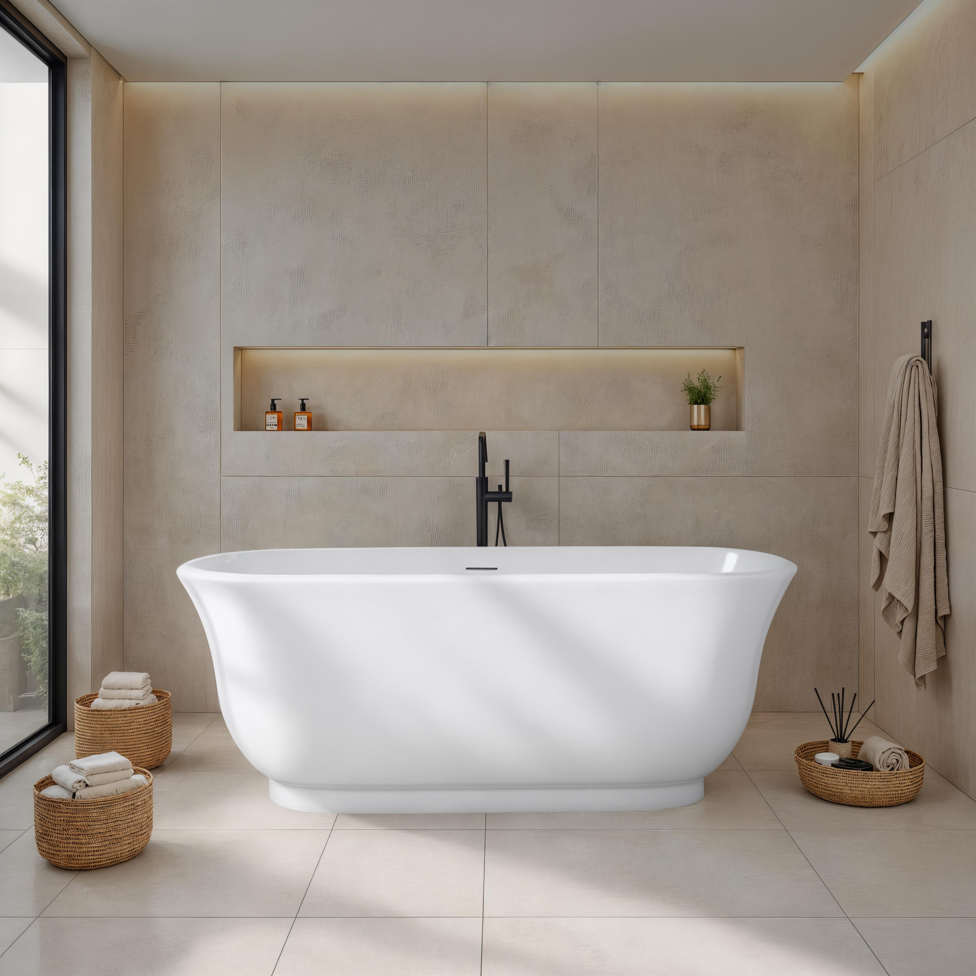 The Marietta freestanding bath is a stylish feature piece that can be suited to any type of bathroom. It's tulip like curves and spacious design means it is perfect for comfort. Made from quality acrylic, the Marietta bath is easy to clean and built to last.