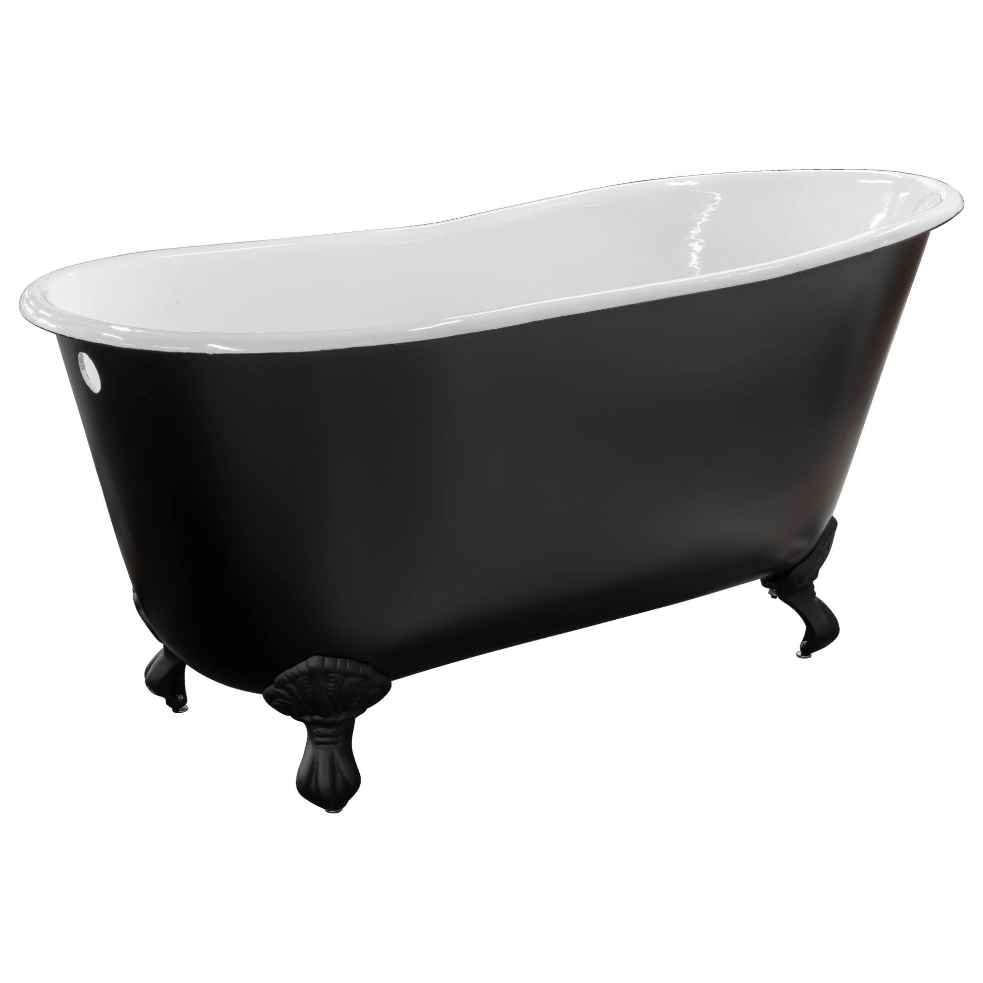 Mini 145x68cm Cast Iron Bath with Feet, Matte Black & White