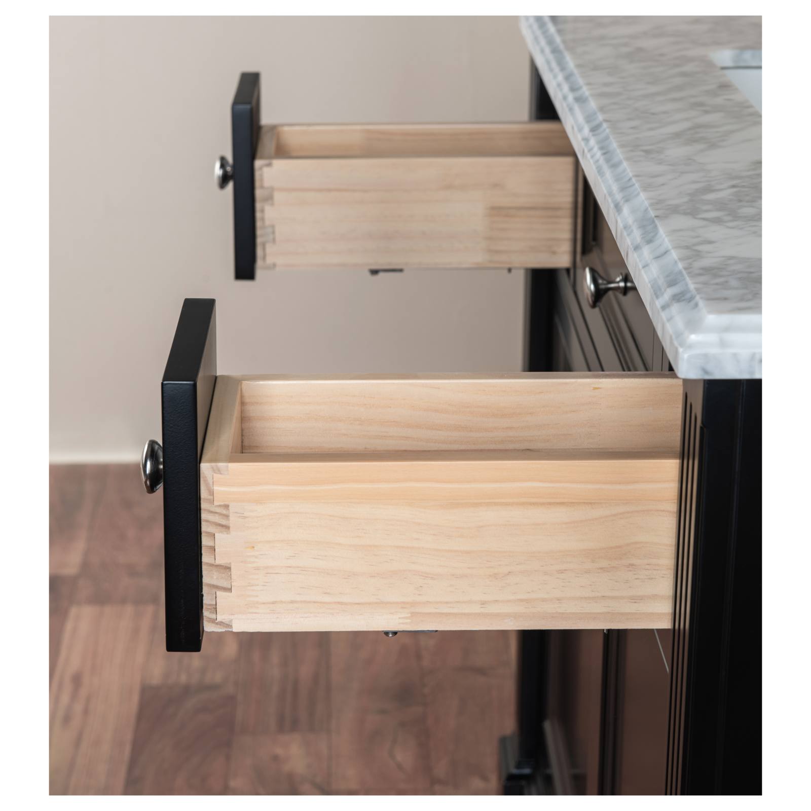 Simple yet stunning, this vanity is contemporary in design and features a Marble Top and rectangular basin. The cabinet is constructed from moisture resistant MDF which provides a smooth surface for the clean black painted finish.