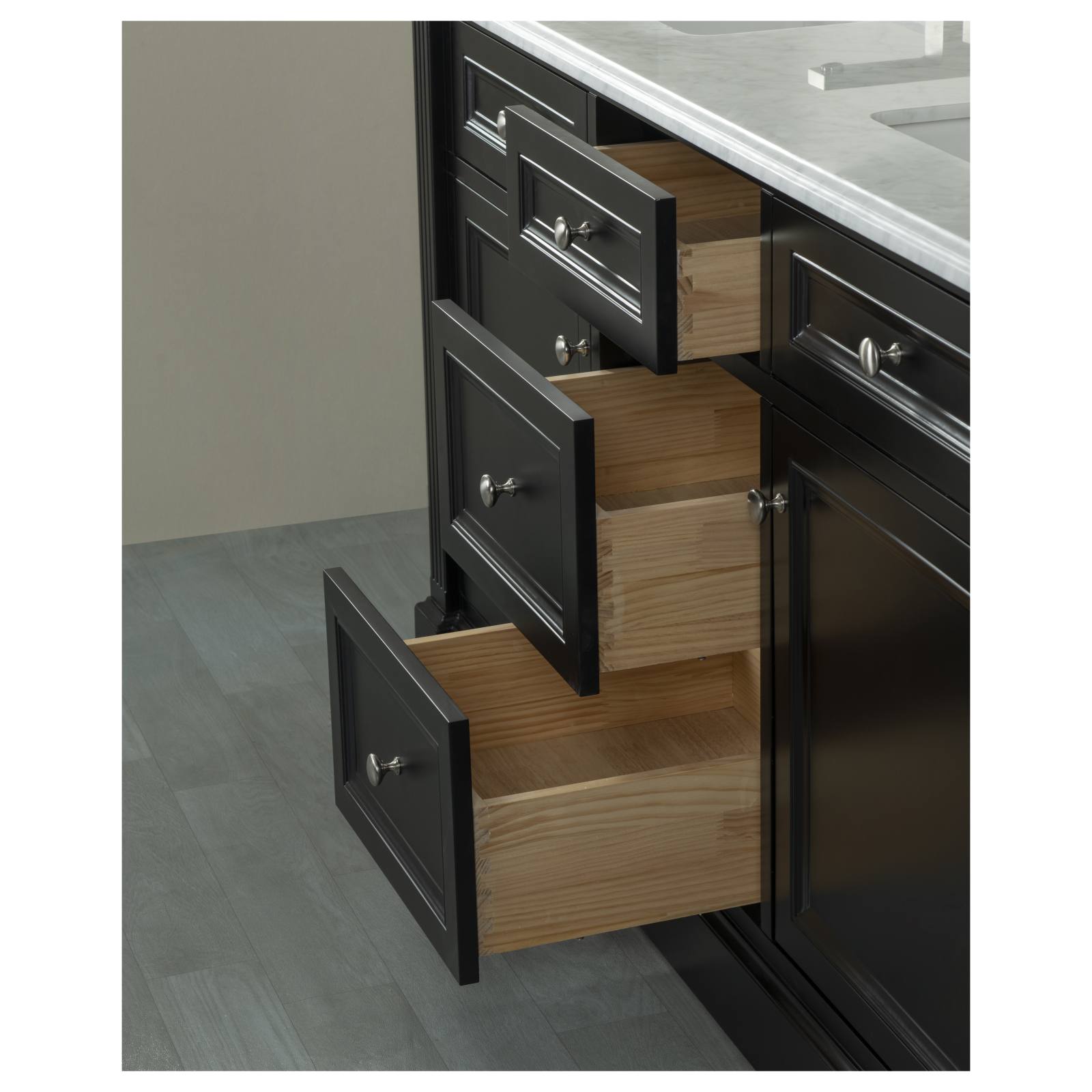 Step into luxury with the OC Classique 1500mm Marble Top Black Double Freestanding Vanity, a symbol of timeless elegance and practicality for your bathroom. Impeccably hand-joined and finished in classic black, this vanity embodies sophistication in every aspect. Experience the indulgence of soft-close fittings, guaranteeing seamless and silent operation. Crafted from moisture-resistant timbers, it ensures lasting durability, a true investment for your daily routine. The solid marble bench top, complemented by vintage-styled trim, brings a touch of opulence while providing a sturdy and stylish surface. Accompanied by two exquisite ceramic basins, this vanity offers both functionality and exquisite design, making it the ultimate choice for upgrading your bathroom space.