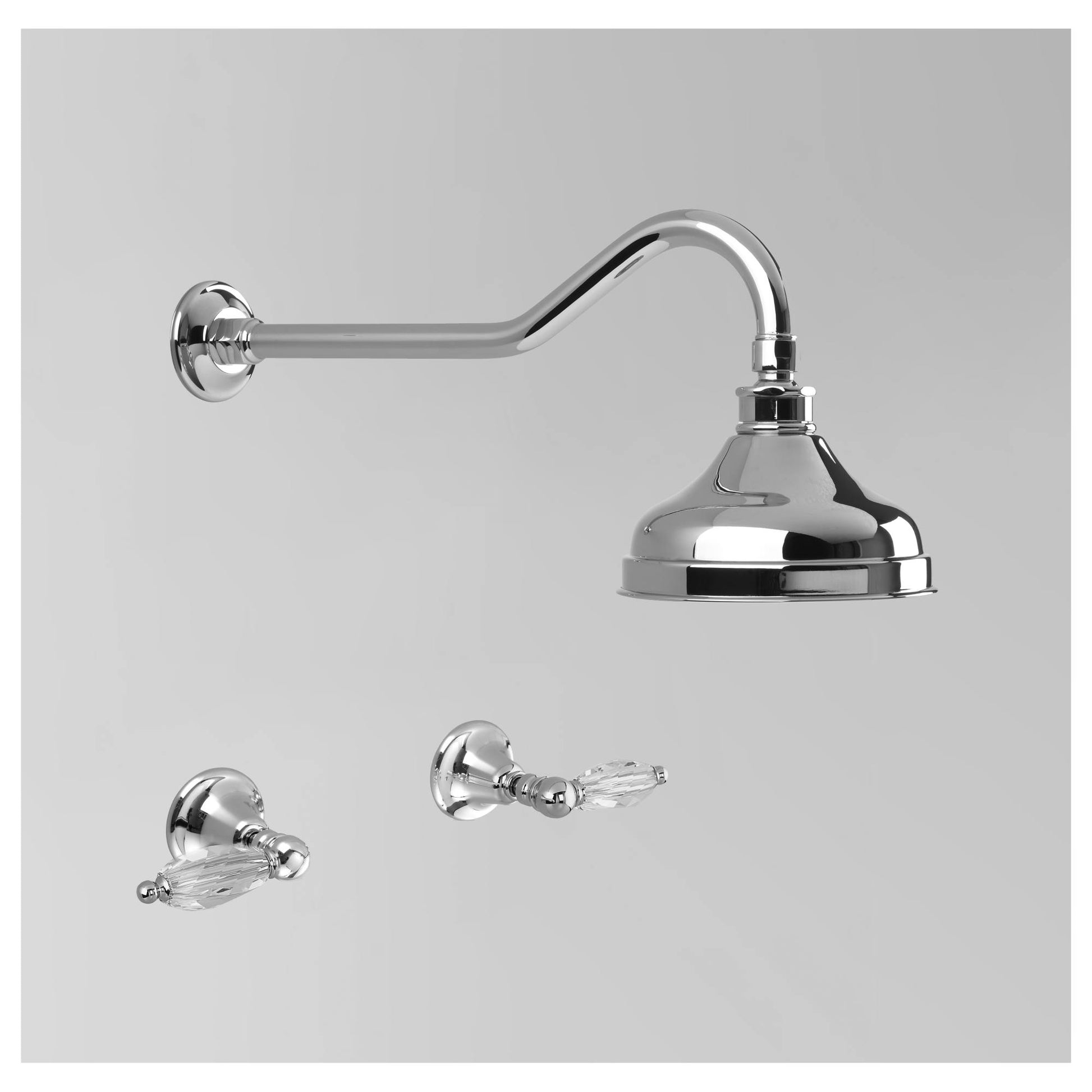 Olde English Shower Set 150mm Rose, Chrome & Crystal Lever