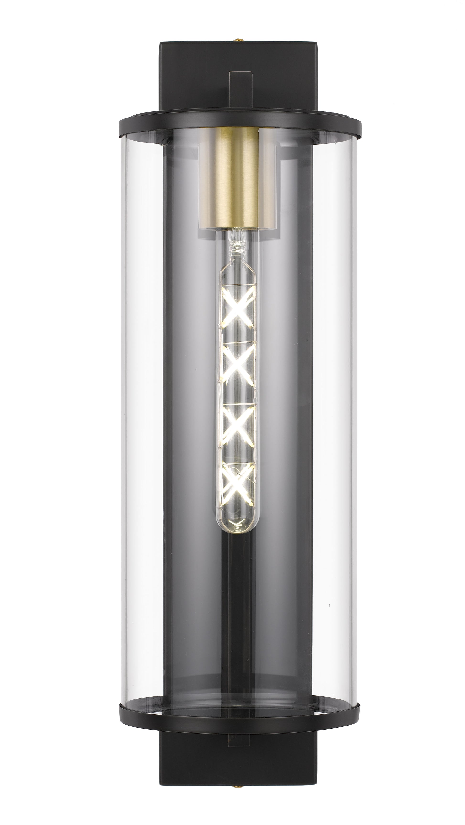 The Perova outdoor wall lamp is inspired by the best of minimalist design and is comfortable in any décor. This fixture is framed in solid brass with a tall cylinder. Add a vintage filament style bulb for an industrial look. It features a clear glass cylinder shade to add a rounded touch to this sleek and stylish fixture. Available in 2 sizes as either brass or black.