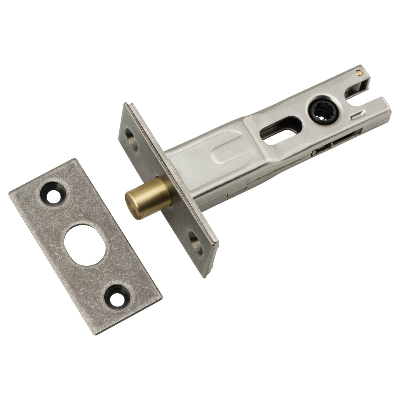 Privacy bolt featuring brass face plate and striker. Suits Iver privacy turns and long backplate privacy hardware.
