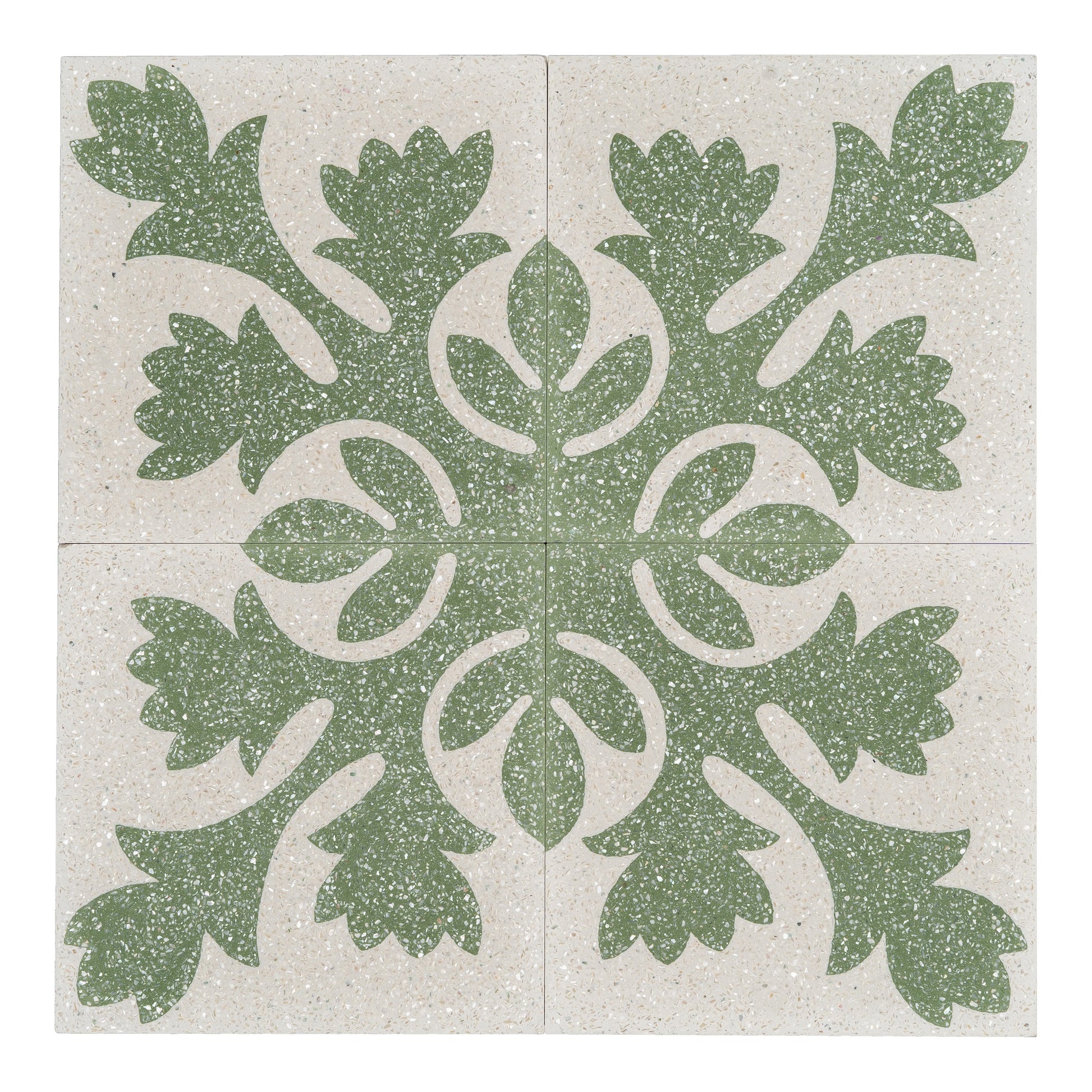 Vittoria Terrazzo 20x20x1.6 Encaustic Tile with Mother Pearl, Beige & Green