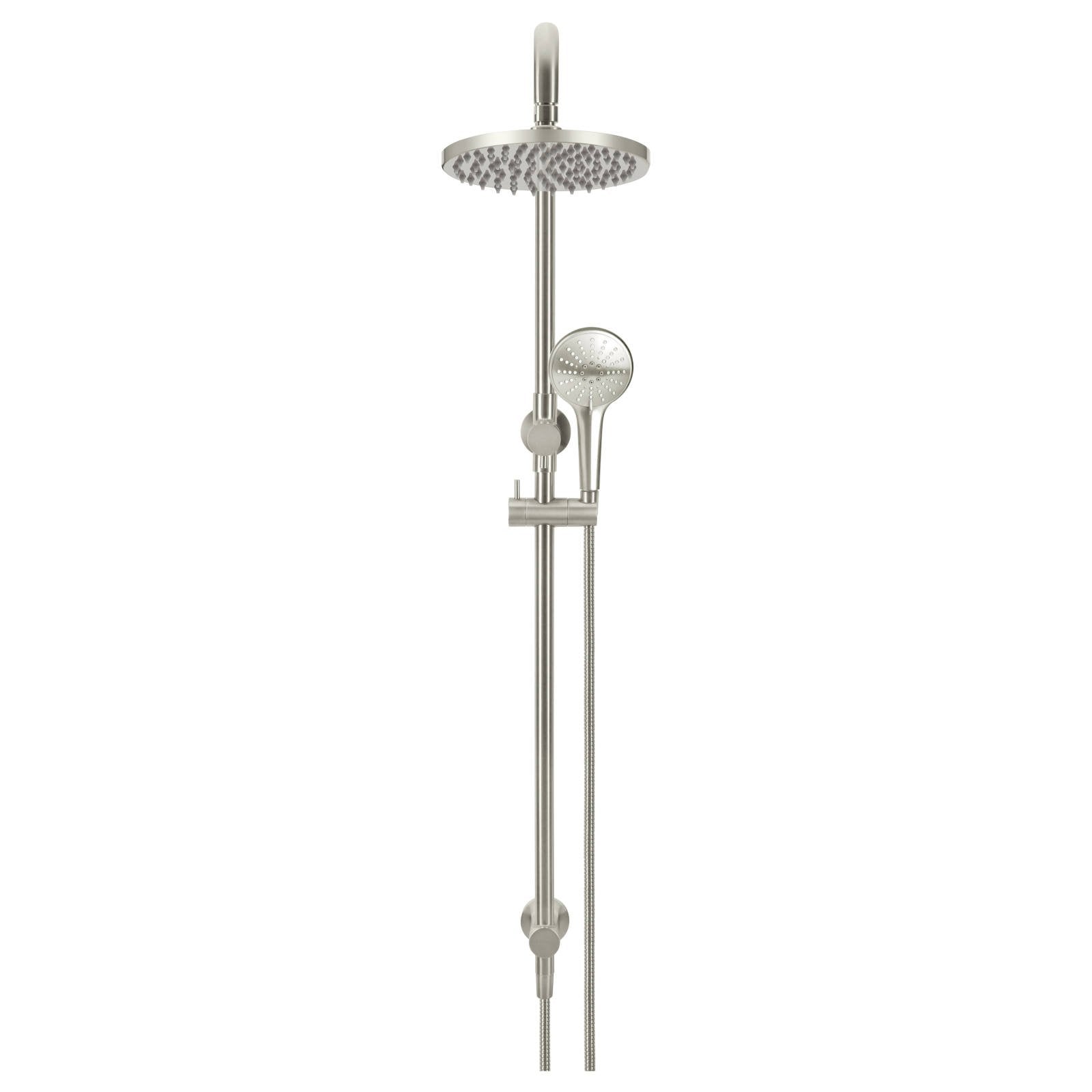 Round Combo Shower Rail, 200mm Rose, 3 Function Hand Shower, PVD Brushed Nickel