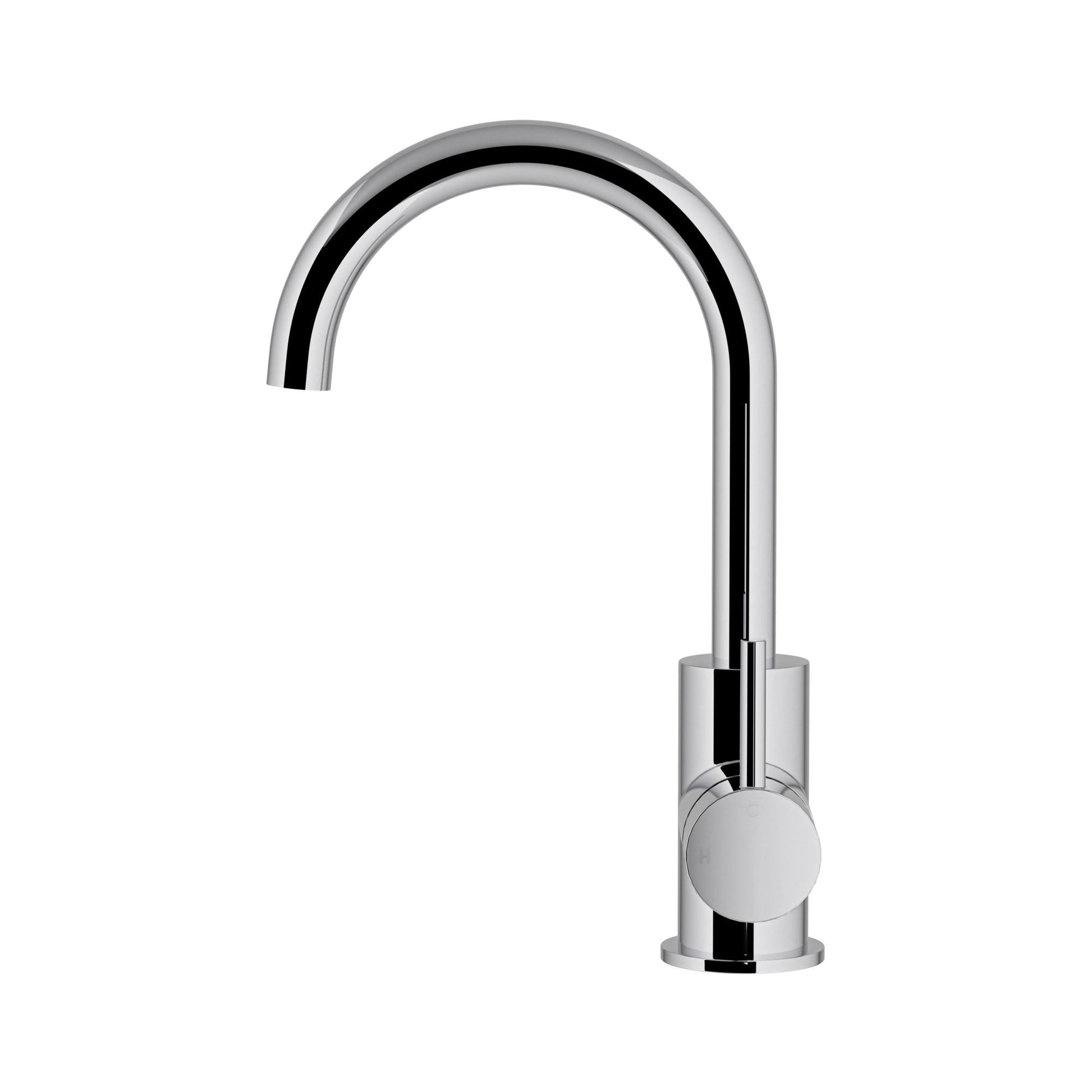 Round Gooseneck Basin Mixer with Cold Start, Polished Chrome