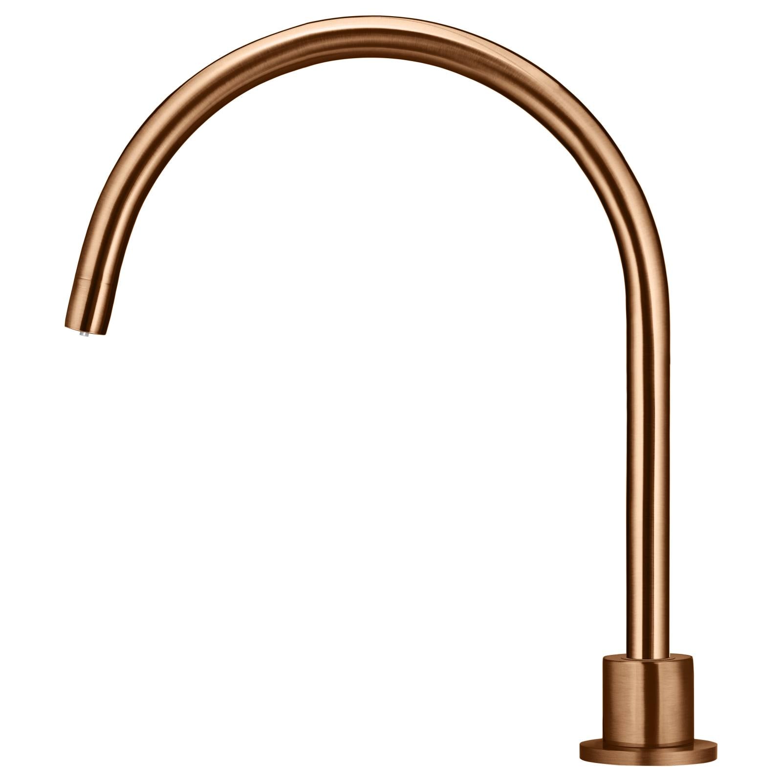 A designer addition to the bath or spa. Boasting a 360-degree rotation, this Lustre Bronze Gooseneck High-Rise Swivel Hob Spout provides as much functionality as it does in class. Partnering perfectly with a selection of Meir taps, the Lustre Bronze High Rise Swivel Hob Spout cuts an especially striking silhouette when paired with the Lustre Bronze Round Deck Mounted Mixer.