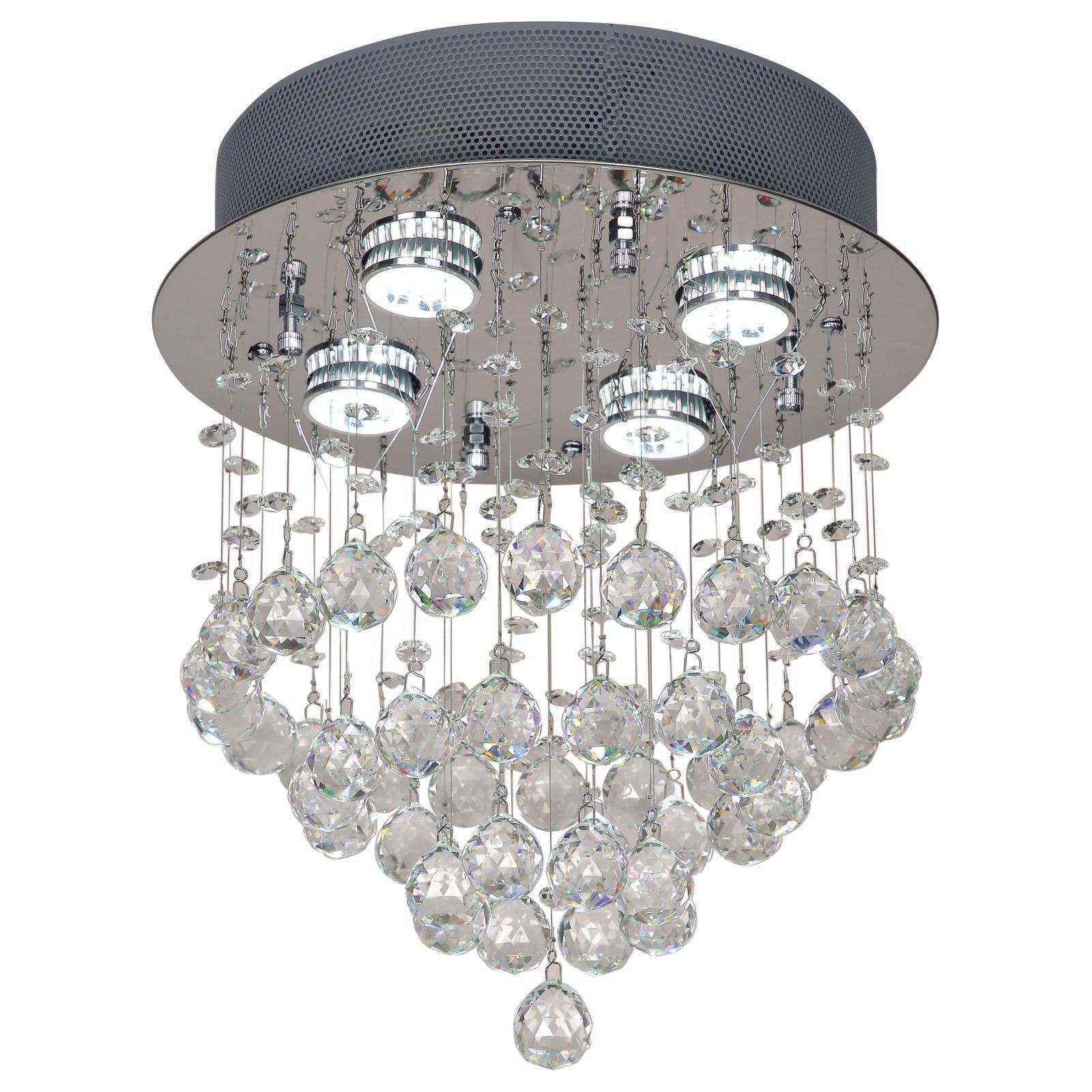 The SAVINA Round crystal collection makes a spectacular statement with lavish crystals and glowing LED light. Dramatic baskets and leaf waterfalls of hand-polished crystal spheres with sparkling beads suspend from the ceiling, shimmering light through each strand. The fixture is pre-trimmed with the crystal strands of fixed lengths, mounted to a precision-cut stainless steel ceiling plate.