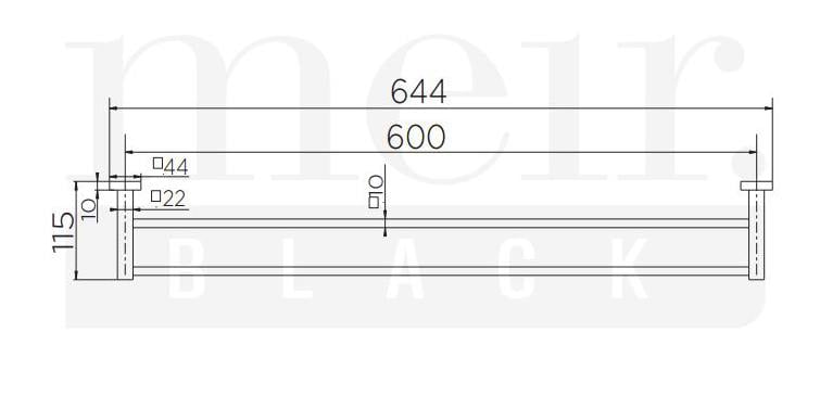 Square Double Towel Rail 600mm, Matte Black
