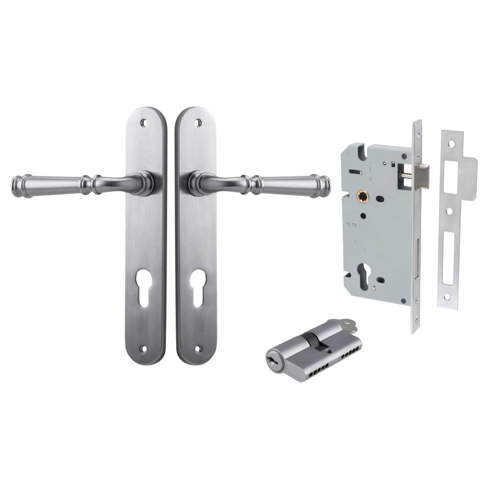 Verona Lever Oval Backplate Entrance Kit w High Security Lock Brushed Chrome