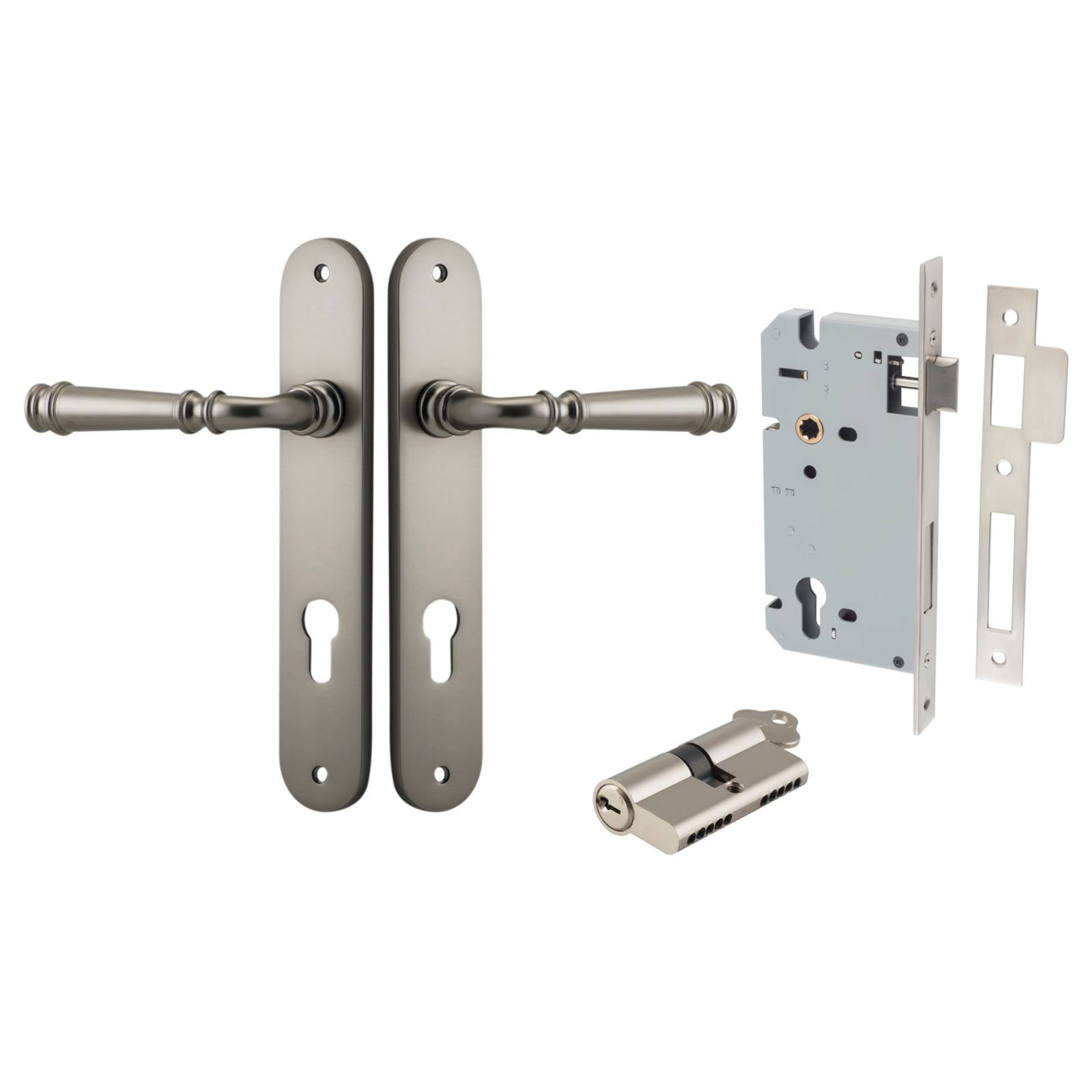 Verona Lever Oval Backplate Entrance Kit w High Security Lock Satin Nickel