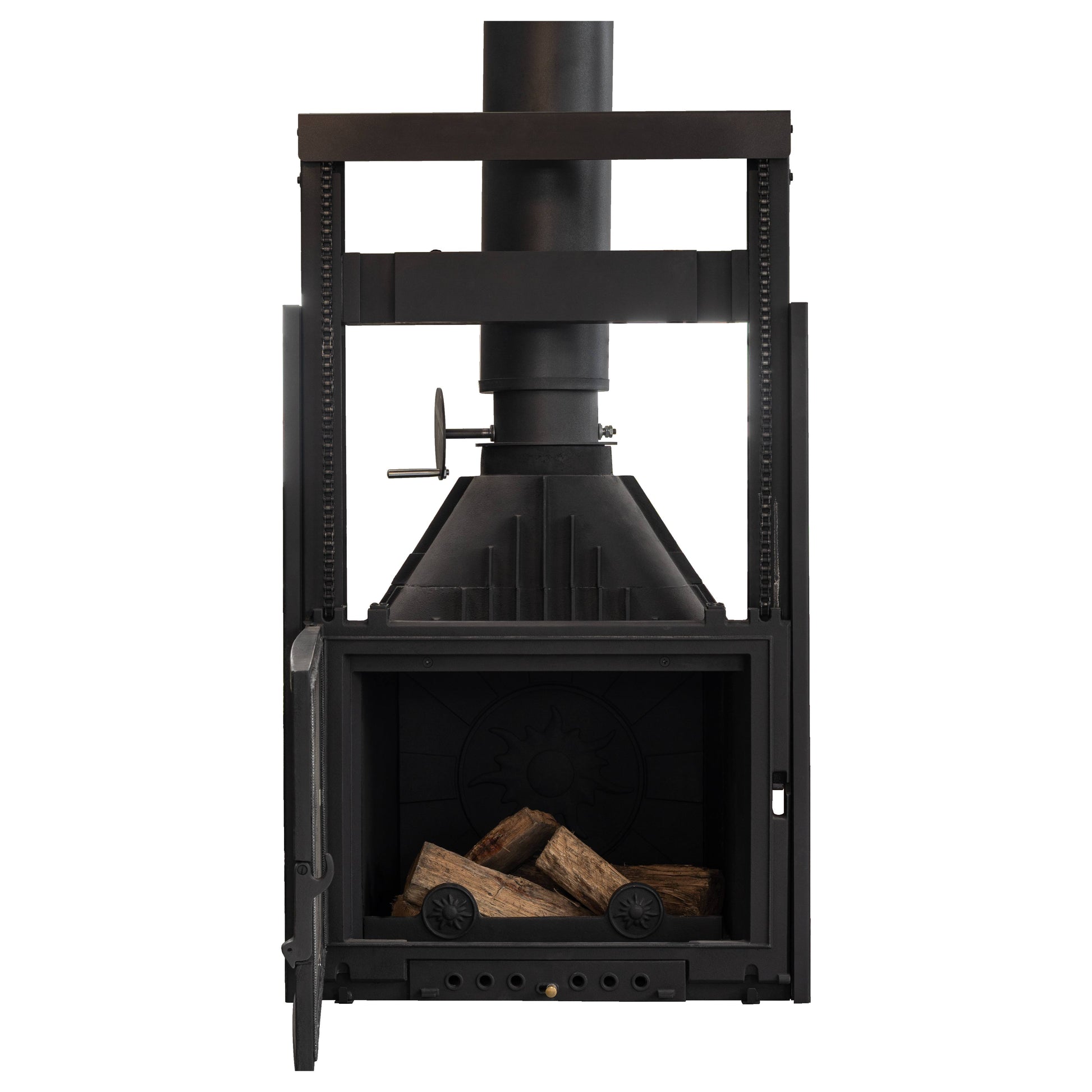 This unique and classic cast iron heater is a favourite among traditional and contemporary homes. It can be built into a chimney or installed as a free-standing fireplace for an industrial feel. The heater features self-cleaning glass doors that can be lifted vertically to reveal the cosy sight of an open fireplace or slid down to keep the heat for more extended periods. This is because of the high heat insulation from its thick glass, which adds the advantage of slower combustion. Quickly adjust the heat output with the damper to suit any occasion with ease. Note 7" to 6" flue reducer damper KA279041 sold separately. Requires 6" flue kit sold separately.